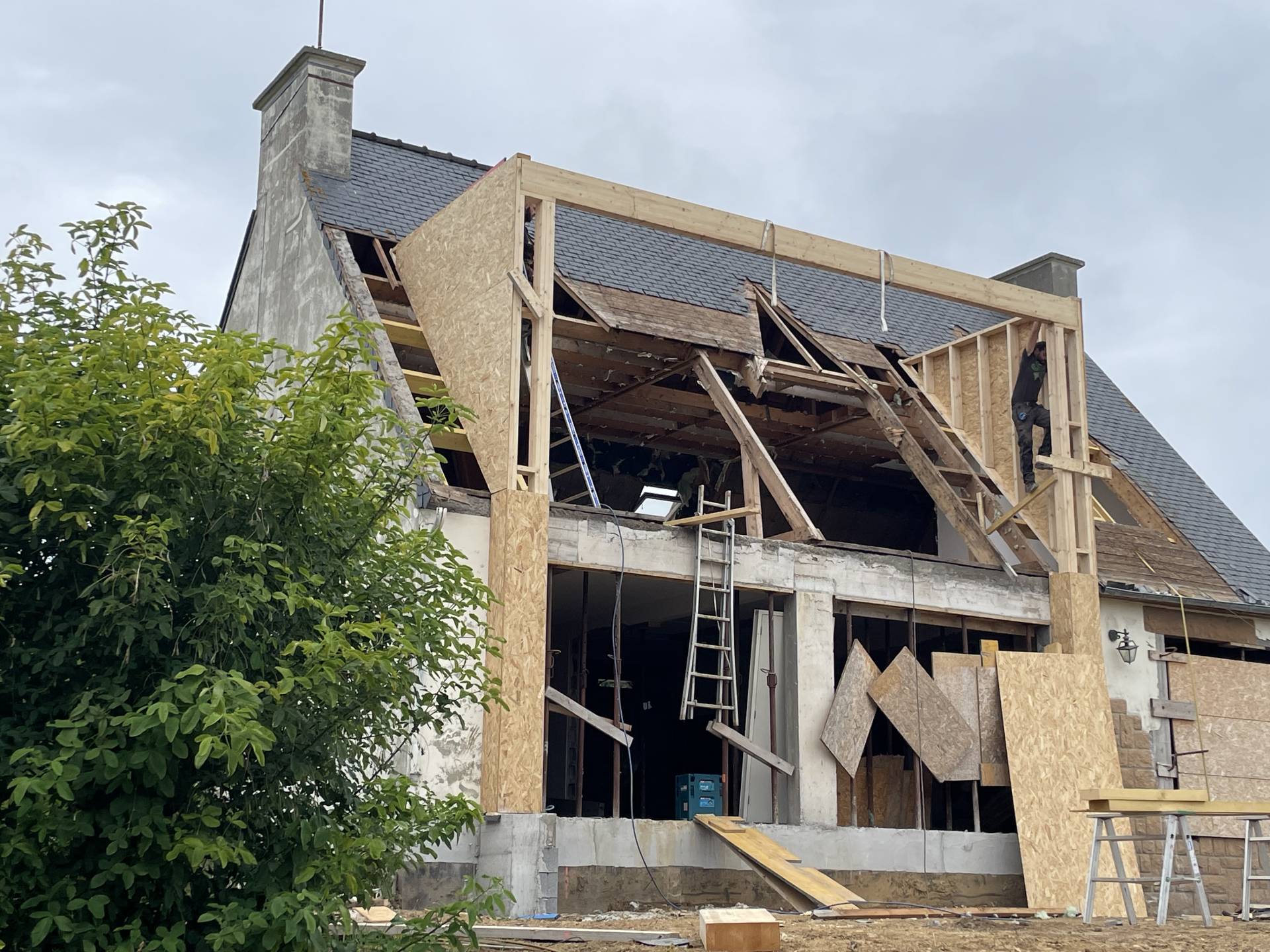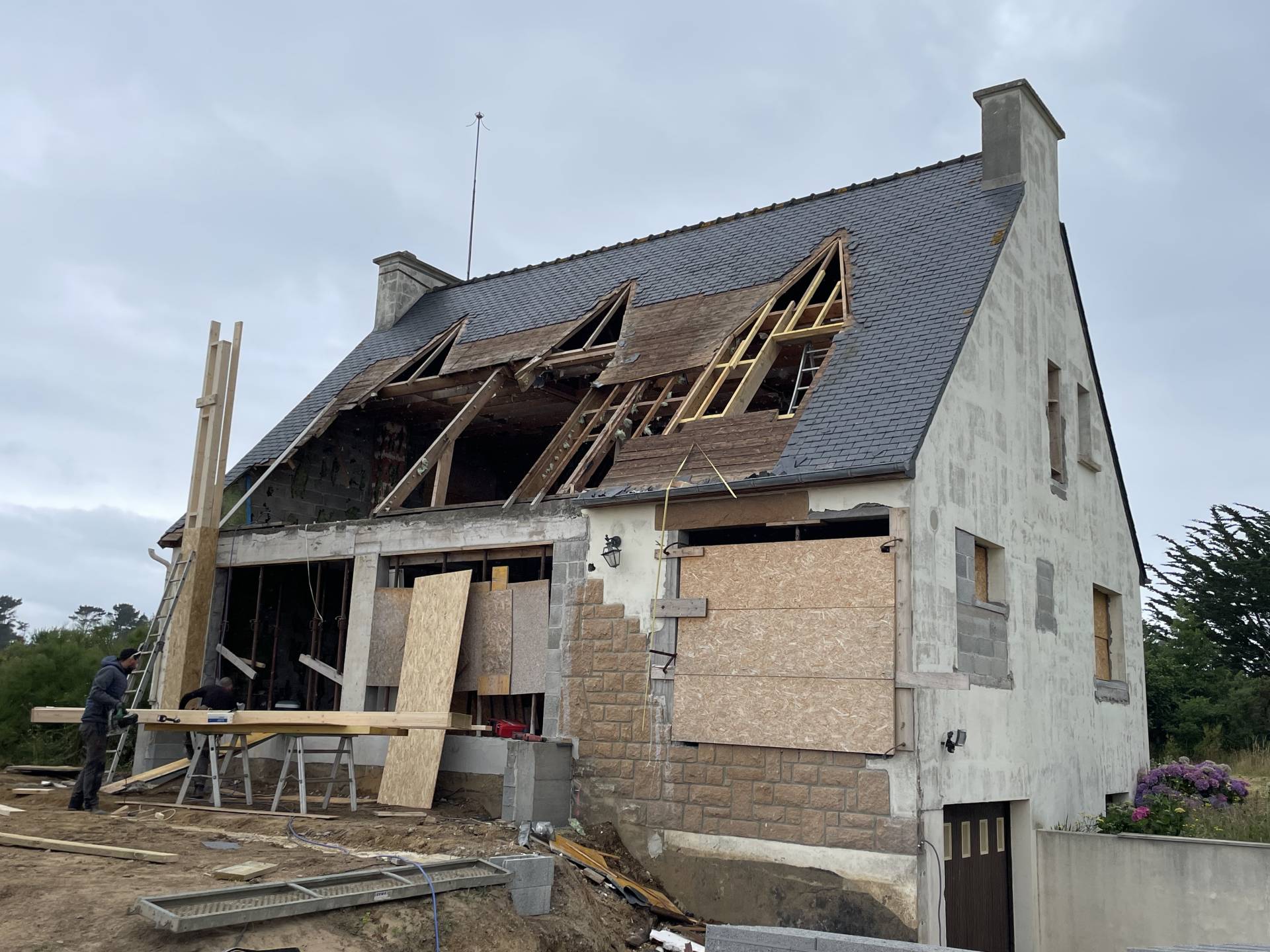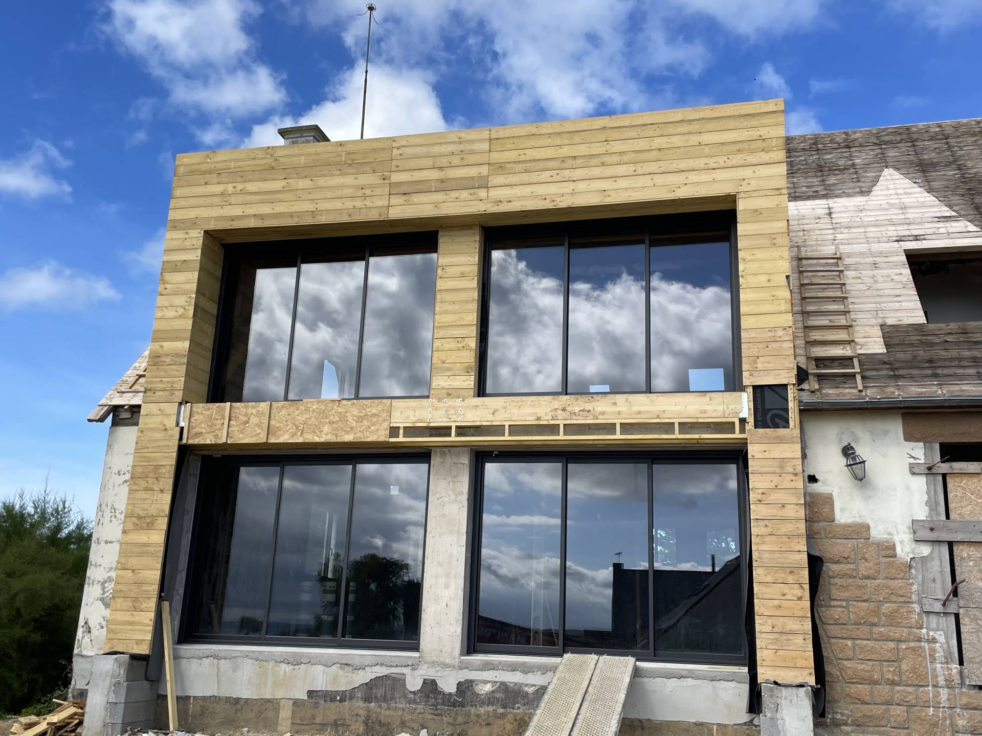 - Démolition des anciennes petites ouvertures pour repenser complètement la façade.